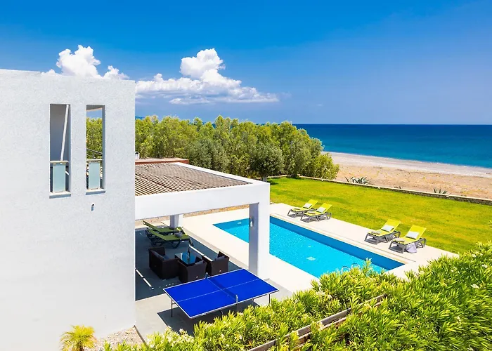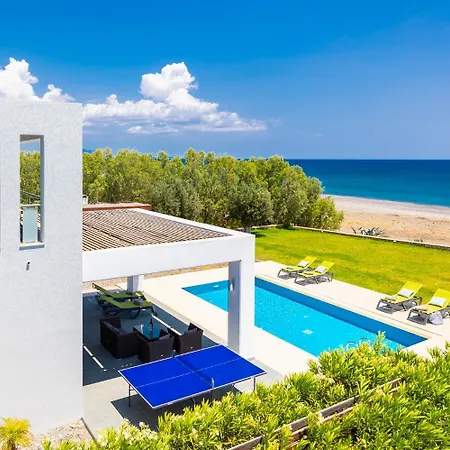 De 3-slaapkamer Villa Lahania beschikt over een terras op de zee en een zwembad.